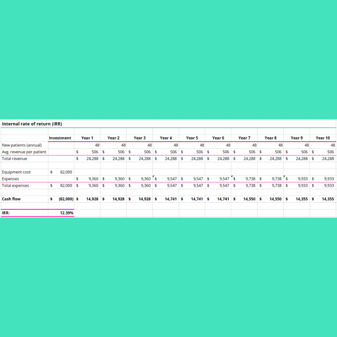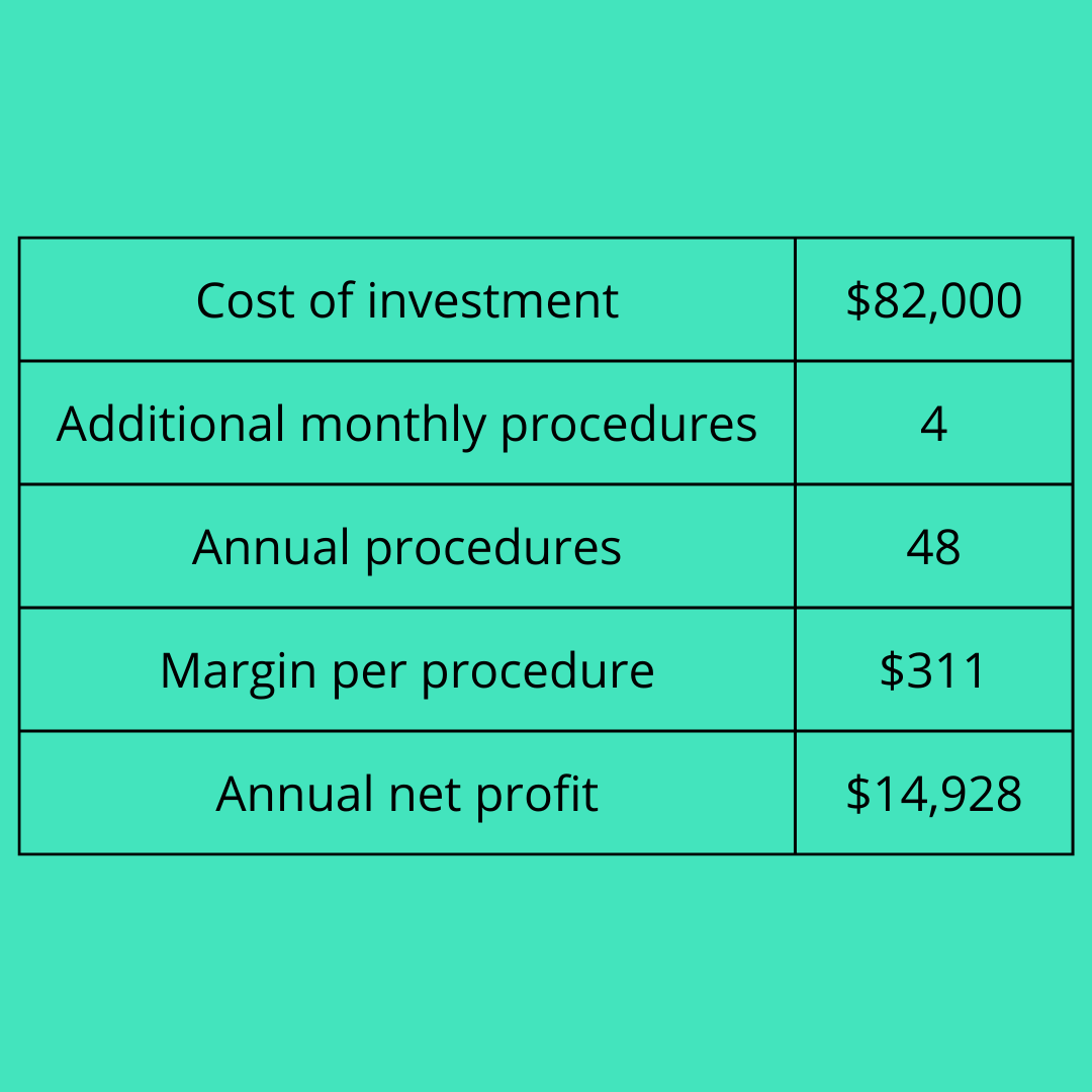 You will be able to do an extra 4 procedures per month because it’s much more awesome. And you’re old one is on the fritz at least once a week, causing you to push back cases and schedule less.
