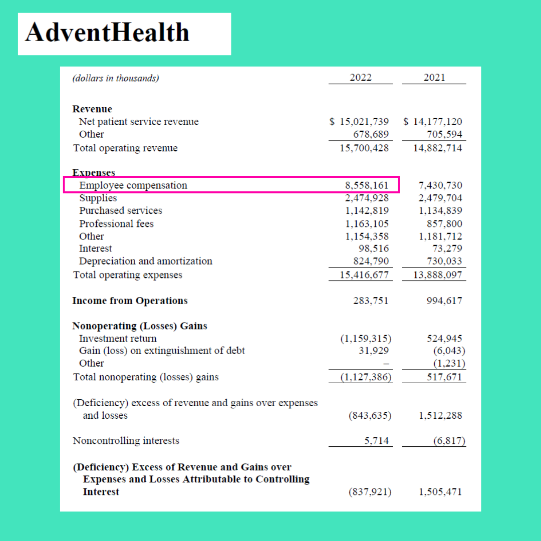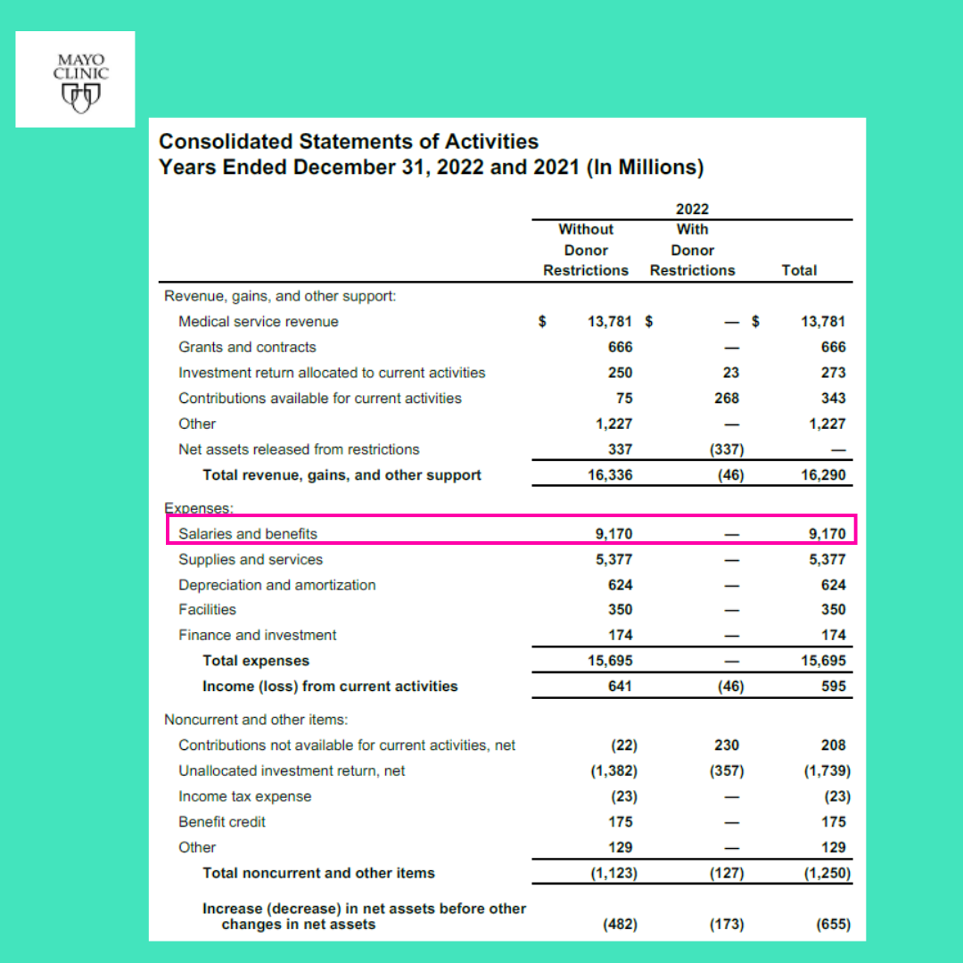 Wages and benefits are the single largest expense in health systems. We aren’t going to unpack where these wages are going, but needless to say, leadership will look to cut someone else’s job, salary, or benefits first.