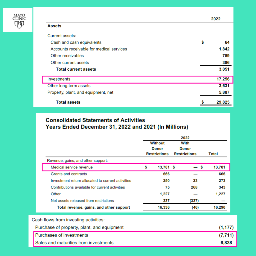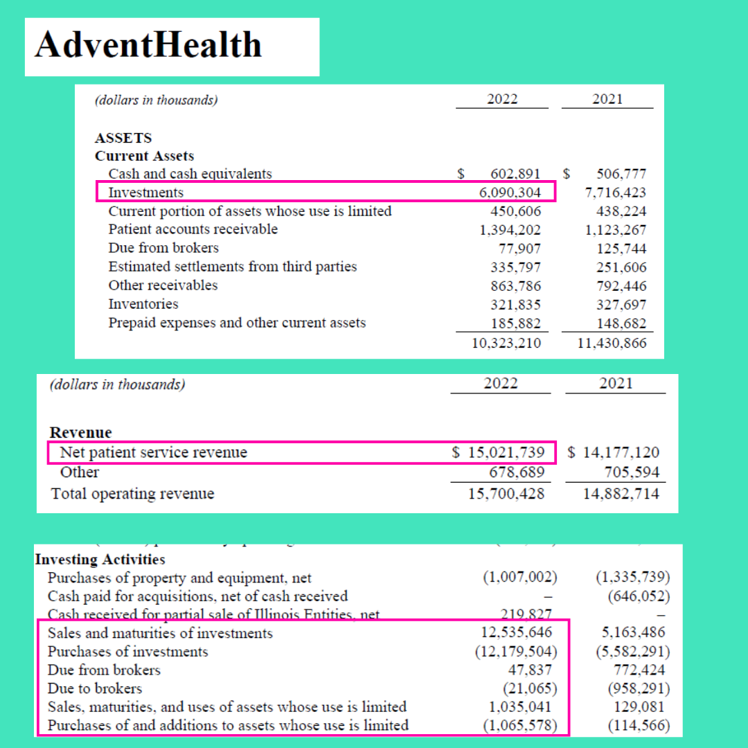 The reality of the modern, large, vertically integrated, multi-state health system, is that they spend as much, if not more, time, money, energy, and focus on investments and financial management as they do on patient care.