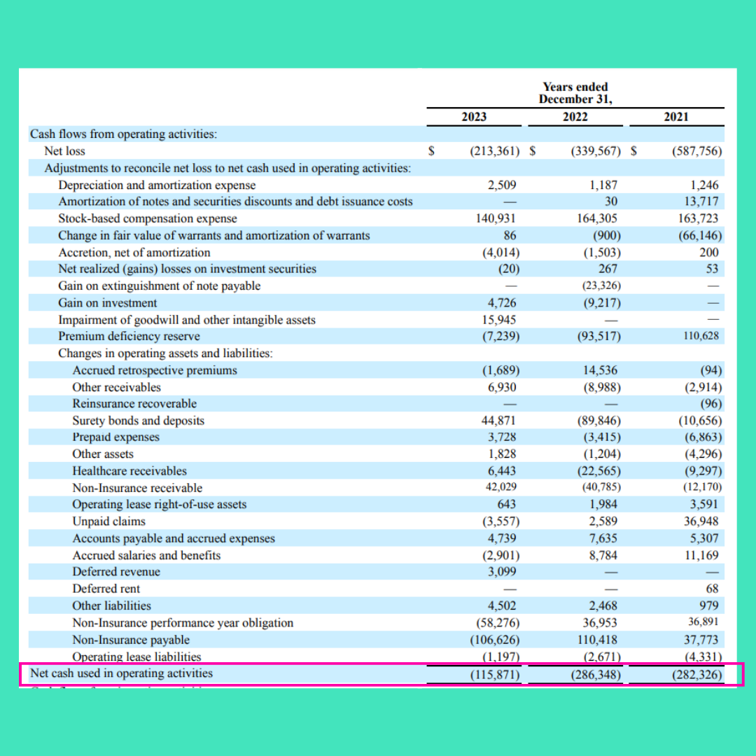 Impairment of goodwill and other intangible assets – Goodwill comes from buying other companies and sort of taking the brand value or the projected value of the company. We saw this example play out with a $13B goodwill impairment from Teladoc recently over the Livongo debacle. Clover didn’t have that big of one, but has had some acquisitions and determined that the value of them is essentially zero based on discounted cash flow analysis. So… you bought a business that turned out to be useless and had to take an expense because it came off you balance sheet assets and we’re supposed to look the other way… How do I reach these keeeeeeeddddssss???